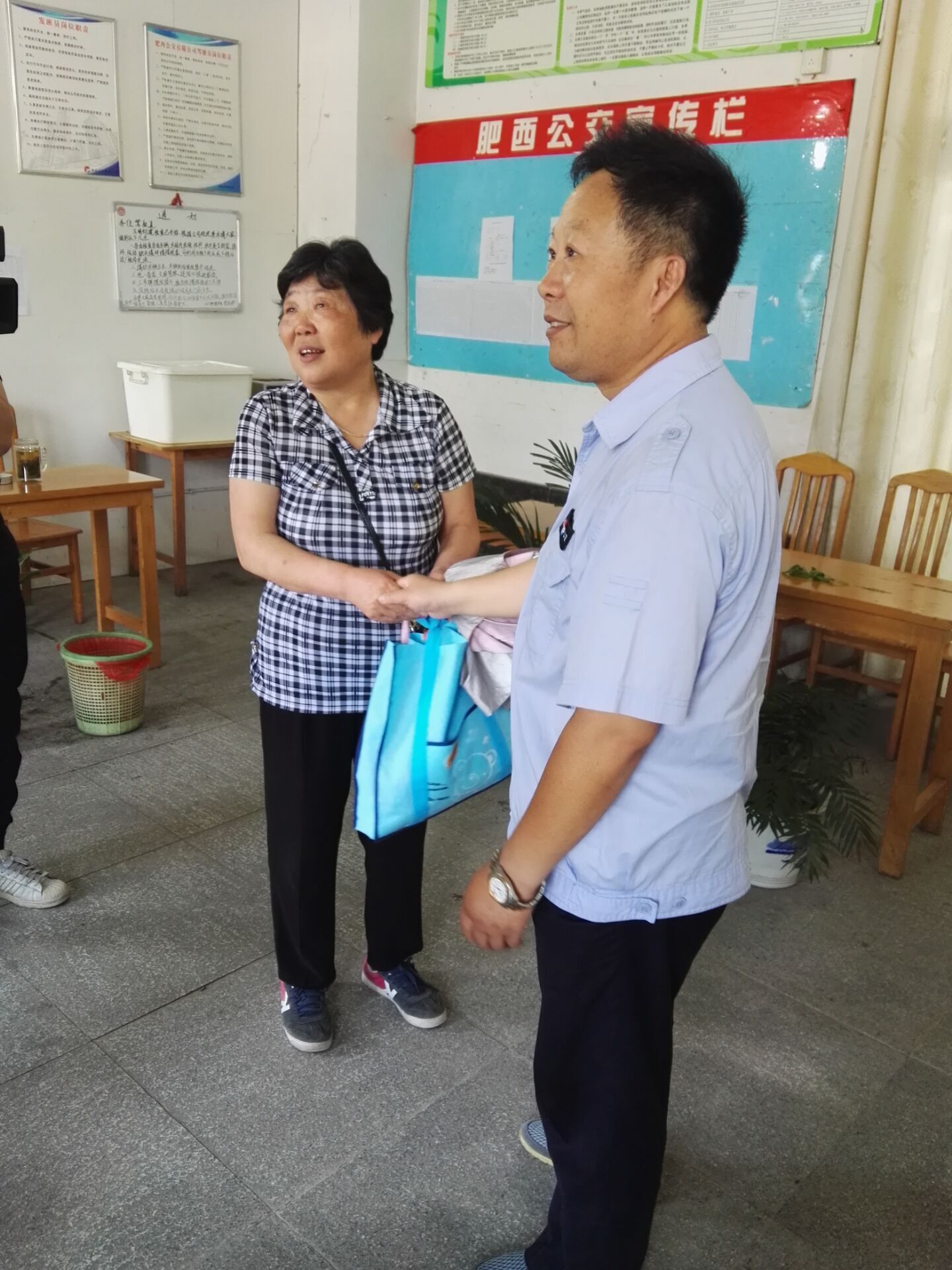 據(jù)悉,該女士姓董,住在上派鎮(zhèn)張郢小區(qū)。29日早七點多,董女士接九十多歲的老媽媽回家,到麗景小學站下車時,因顧著攙扶老媽媽,將裝有錢、衣物的袋子遺落在公交車上。下車后才發(fā)現(xiàn)袋子丟了。而此時,剛乘坐的公交車己經(jīng)駛走。唐女士懵了,包內(nèi)有12400元現(xiàn)金,另有37萬元的借條。那是老媽媽所有的財產(chǎn),要丟了,如何同九十多歲的老人家交待啊。情急之下,董女士乘坐后面的公交車,追到站內(nèi),并在駕駛員的幫助下聯(lián)系了當班發(fā)班員,希望協(xié)助找尋。而此時,當班駕駛員唐才,在后視鏡內(nèi)發(fā)現(xiàn)后排座位上有個袋子,已經(jīng)放在座位上行駛好幾站了,憑經(jīng)驗,唐才斷定是乘客遺落的。為保護好乘客的遺失物品,唐才將袋子拿到了駕駛室,準備到站后交到公司。車輛剛剛駛入站內(nèi),就迎到發(fā)班員王炯華,問詢是否有撿到乘客遺失物品。倆人將袋子拿到站內(nèi),經(jīng)清點,現(xiàn)金、借條保存完好。急匆匆趕到的董女士現(xiàn)場清點了錢物,異常激動,并從包內(nèi)拿出200元現(xiàn)金要感謝唐師傅,被唐師傅婉言謝絕了。董女士緊緊握住唐師傅的手,感激之情溢于言表,并堅持過幾天要送上一面錦旗,感謝肥西公交駕駛員拾金不昧,傳承并宣揚社會正能量。